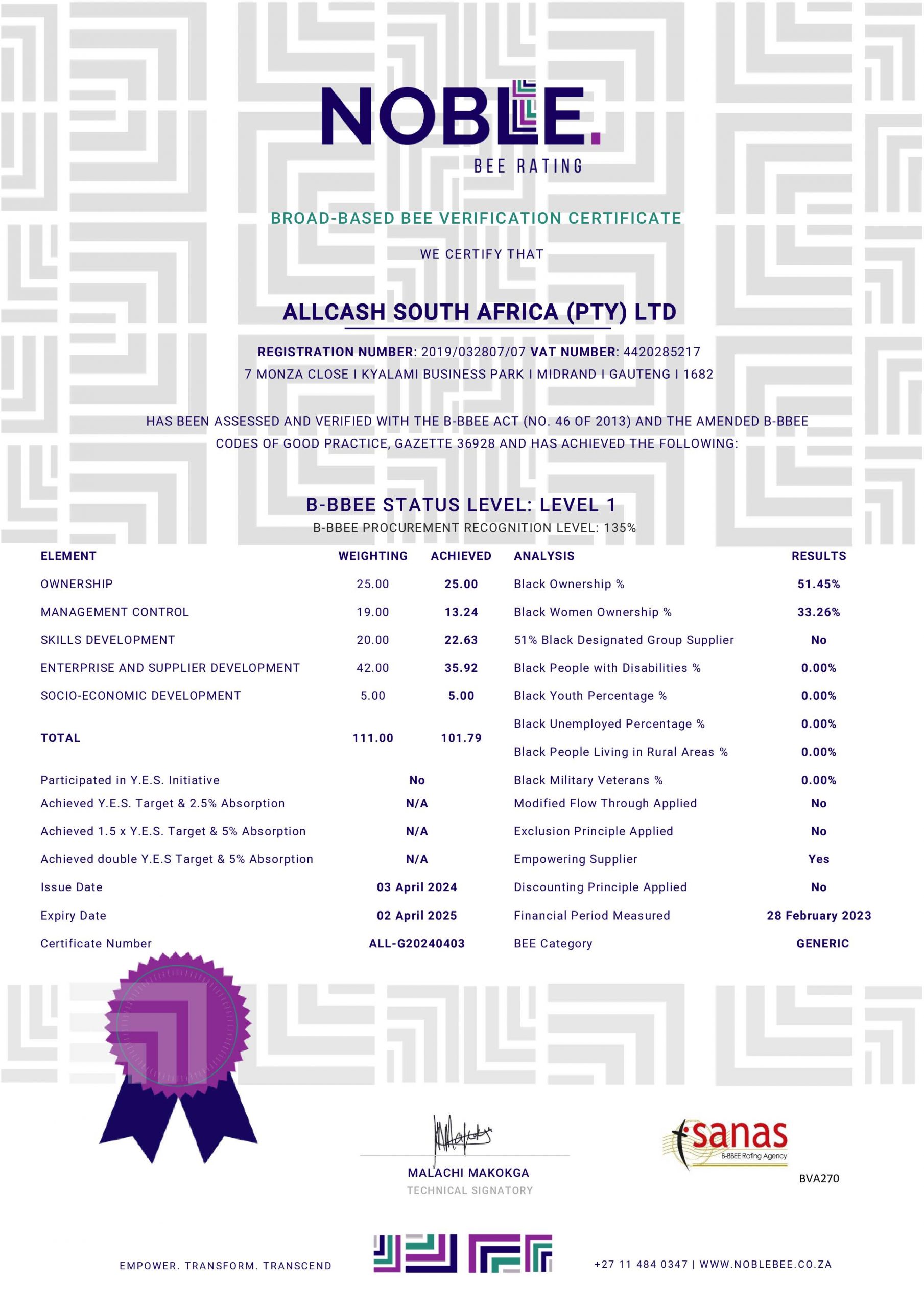 Download Our BBBEE Certificate